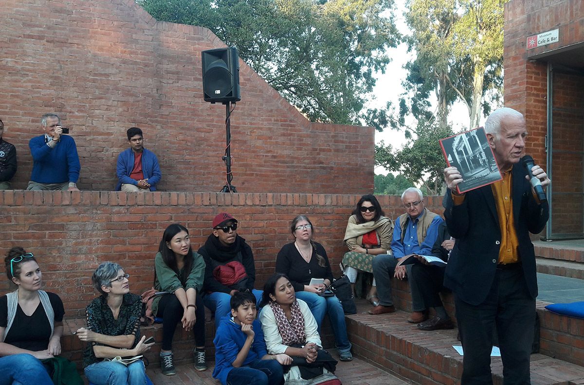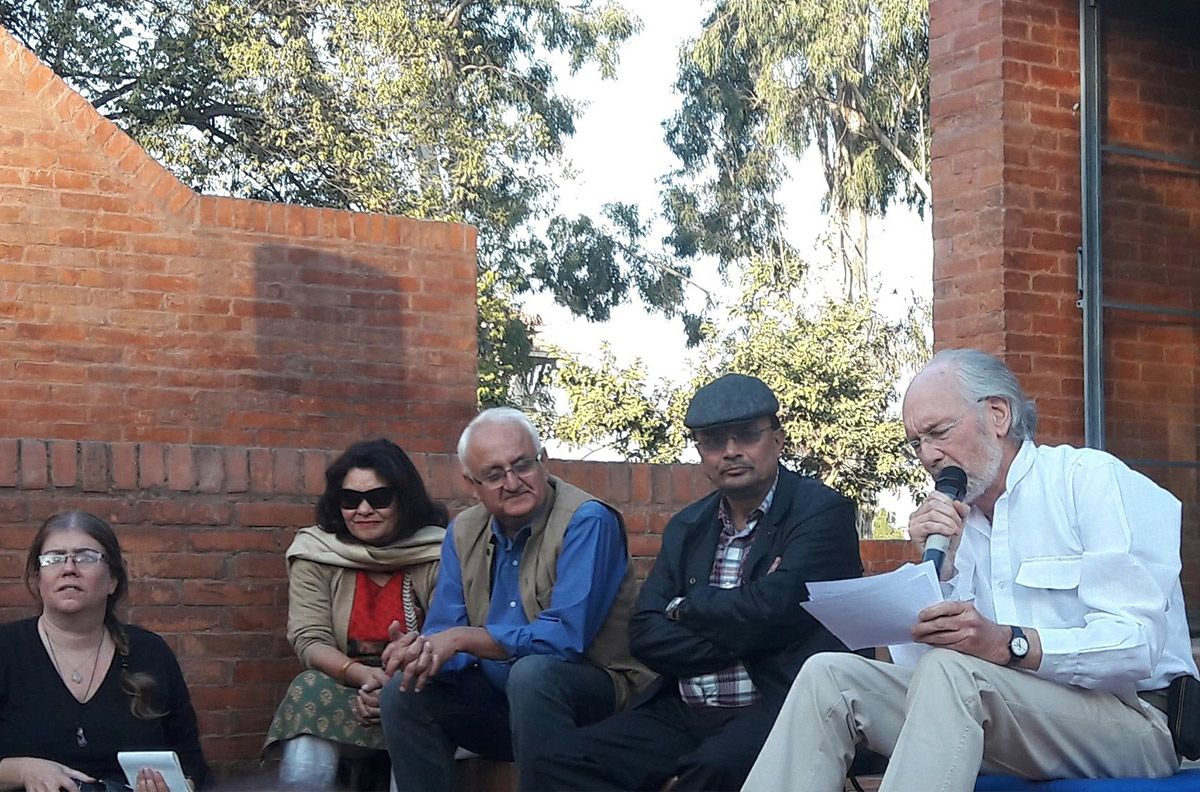 Our third lecture featured Klaus Kunzman, who shared personal insights alongside a careful overview and critique of urbanization in Kathmandu. Recalling his first visit here in 1982, Kunzman compared his earlier experience to the current precarious terrain, wherein concrete structures now subsume traditional heritage sites. The exhibition included around 40 drawings from 1982, 1994, and 2016 at the Taragaon Museum.
